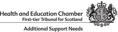 First-tier Tribunal for Scotland Health and Education Chamber Glasgow Tribunals Centre 20 York Street Glasgow G2 8GT ASNTribunal@scotcourtstribunals.gov.uk www.healthandeducationchamber.scot